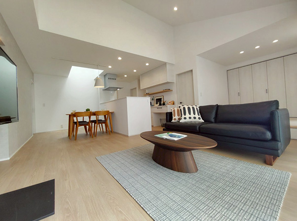 3LDK+SS、デザインにこだわった落ち着く空間のLDK。2階は洋室2部屋のみ、主寝室を1階に設けた平屋暮らし可能なフレキシブル間取り♪